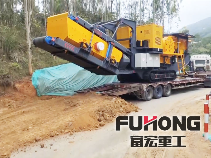 履帶式花崗巖移動(dòng)顎式破碎機(jī)現(xiàn)場(chǎng)